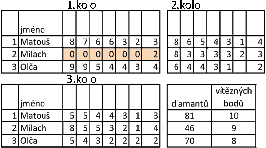 Zvýrazněná část v prvním kole je »handicap« pro staršího hráče