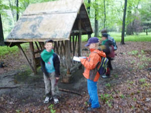 Hned na začátku Rosťa „málem ztratil“ šátek a Domino „ztratil“ píšťalku. To naštěstí byly jediné ztráty. Cesta podle fotek se dařila a tak jsme se dostali na mýtinu, kde jsme házeli s granáty do kruhu a na trojnožky. Po několika slovech jsme byli u krmelce, kde jsme si zahráli ocásky. Po chvíli putování jsme dospěli k plotu kolem skladu trhavin a kolem něj k posedu. Tady postupně předvedli všichni jak se jim daří přečíst slova, která během cesty nasbírali. Kdo byl úspěšný mohl vystoupit nahoru, kde měl splnit během tří minut úkoly s dalekohledem. No a pak už byl sotva čas vrátit se ke klubovně. Na zpáteční cestě bylo prémiové sbírání slov. Někde u krmelce jsme potkali Barču s Ájou — to byli ti, kteří přišli pozdě… Ke klubovně jsme dorazili lehce po půl šesté. Zkontrolovali si zapůjčené věci a rozloučili jsme se…